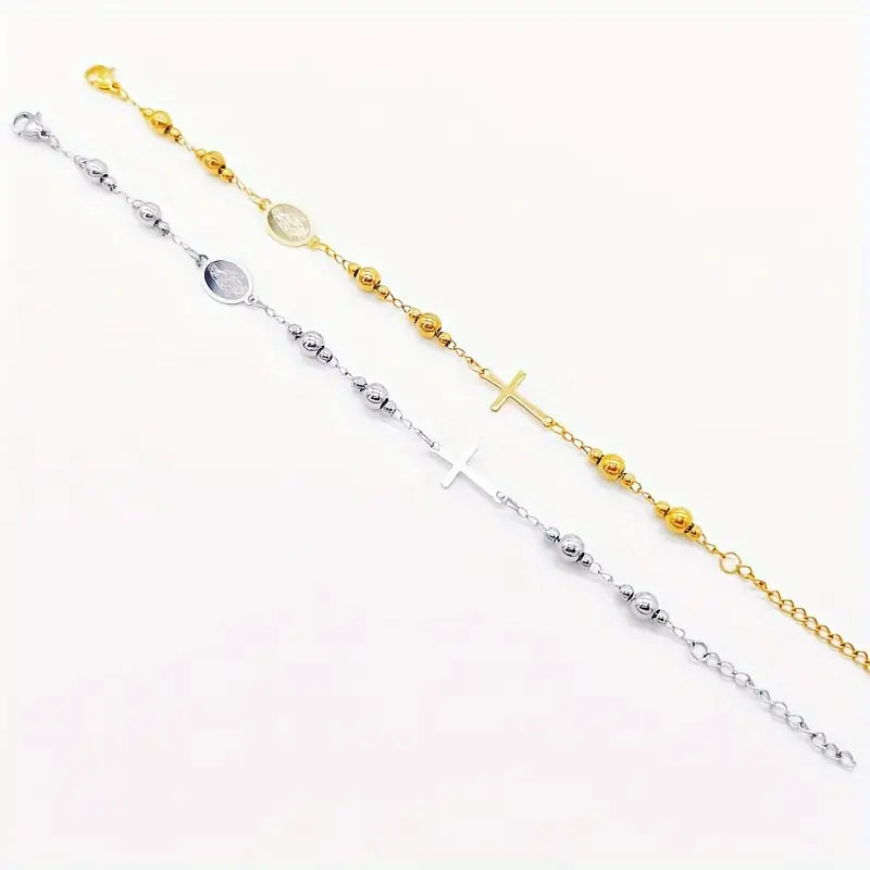 Deze elegante rozenkrans armband is meer dan alleen een accessoire β het is een symbool van geloof en stijl. Met verfijnde roestvrijstalen kralen, een gedetailleerde heilige bedel en een klassiek kruisje is deze armband perfect voor dagelijks gebruik of als betekenisvol cadeau.