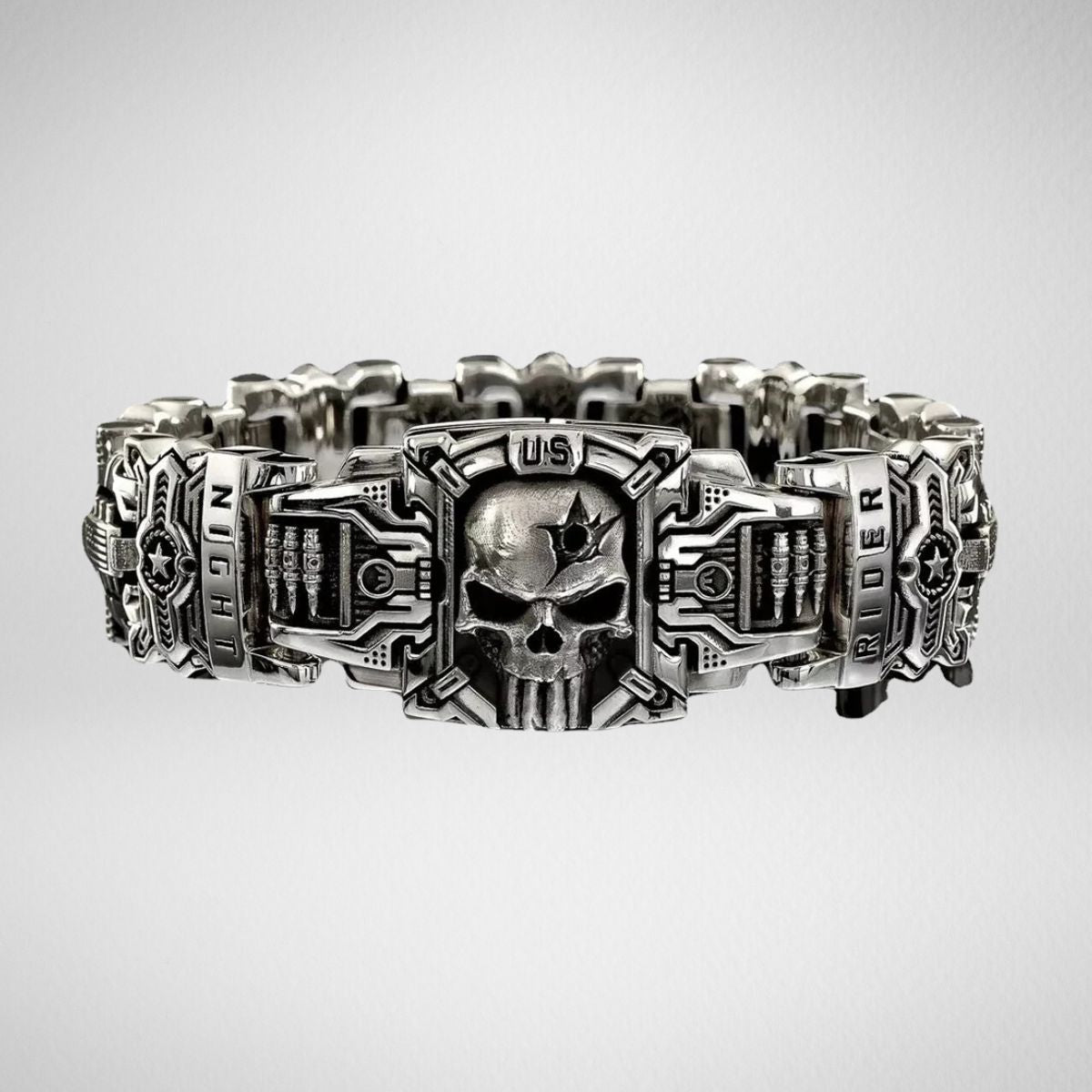 Laat je van je stoerste kant zien met deze gedurfde vintage schedelarmband , geïnspireerd op motorcultuur, streetwear en hiphopstijl. De grove schedel en robuuste afwerking maken dit sieraad tot een echte eyecatcher voor wie durft op te vallen.